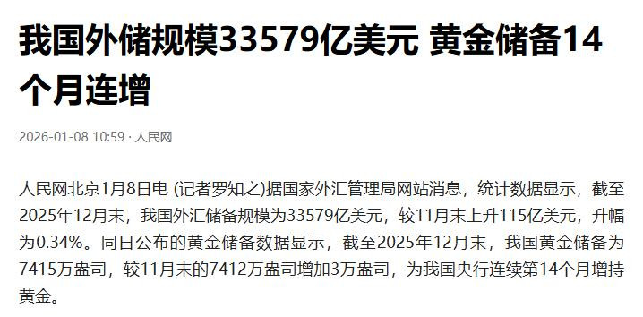 所以中国的减持动作,本质上是资产结构的主动调整。一边慢慢卖出美债,一边把钱投向更安全、更多元的资产。最明显的动作就是买黄金——根据国家外汇管理局的数据,截至2025年12月末,中国央行已经连续14个月增持黄金,黄金储备达到了7415万盎司。黄金这东西不用多说,几千年来都是硬通货,不管全球经济怎么波动,它的价值都能稳住,是公认的“安全垫”。