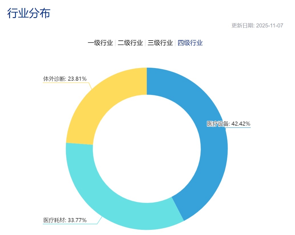 中证指数官网数据显示,医疗器械指数ETF(159898)跟踪中证全指医疗器械指数搭搭网,权重中医疗设备含量42.42%、医疗耗材占比33.77%、体外诊断占比23.81%。